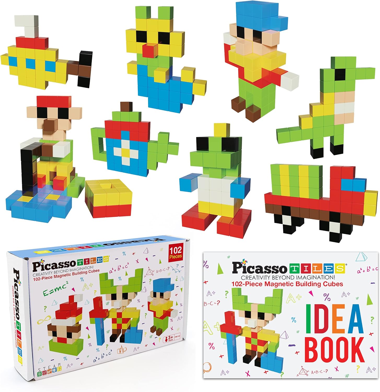 PicassoTiles Kids 1″ Pixel Magnetic Puzzle Cube 102 Piece Mix & Match Cubes w/ Free Idea Book Sensory Toys STEAM Education Learning Building Block Magnets Construction ToySet Stacking Magnet Kit, PicassoTiles PicassoToys Toy Carry Case Magnetic Tiles Construction Blocks Travel BagEVA Storage Organizer Box Action Figure Character Accessory STEM STEAM Toys Portable Waterproof Oxford Cloth PTA10