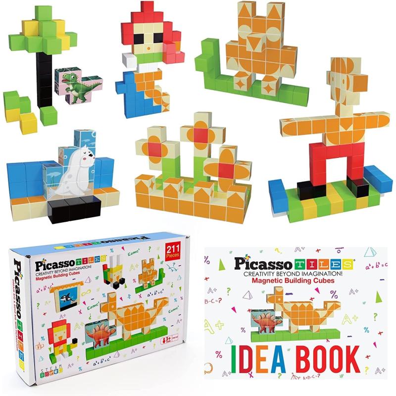 PicassoTiles STEM Learning Toys 152 Piece Building Block Set Kid Toy Construction Engineering Kit Educational Blocks w/ Idea Book Design Guide, Storage Carry Box, Power Drill, Ratchet, Age 3+ PTN152, PicassoTiles Kids Pixel Magnetic Puzzle Cube 103 Piece Mix & Match Cubes w/ FREE Idea Book Sensory Toys STEAM Education Learning Building Block Magnets Construction ToySet Stacking Magnet Creative Kit
