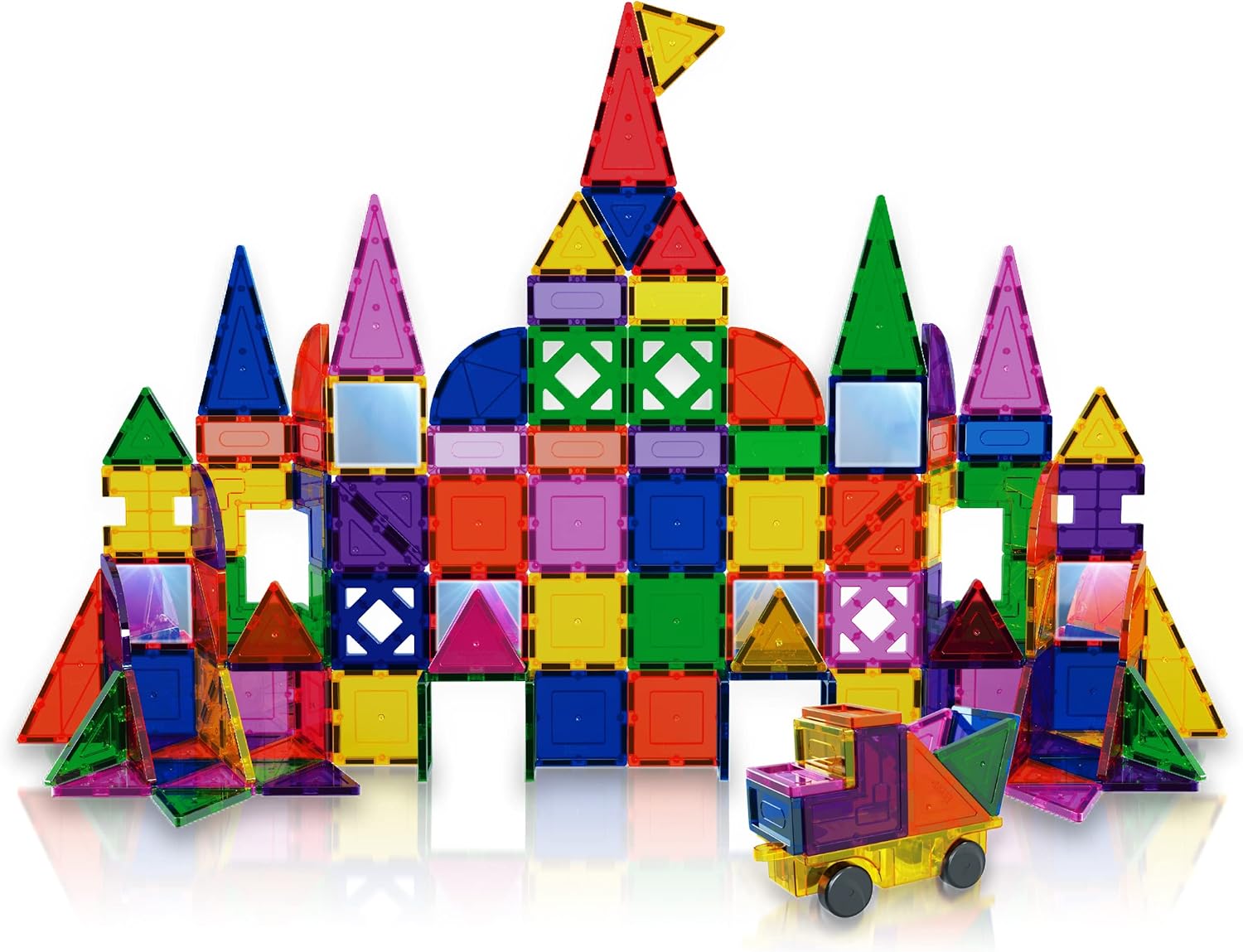PicassoTiles 152pcs Clear Magnetic Tiles Set, Expansion Pack, Creative Magnet Building Blocks, Kindergarten Preschool Toddler Classroom Toys, Educational Learning STEM Toys for Boys and Girls