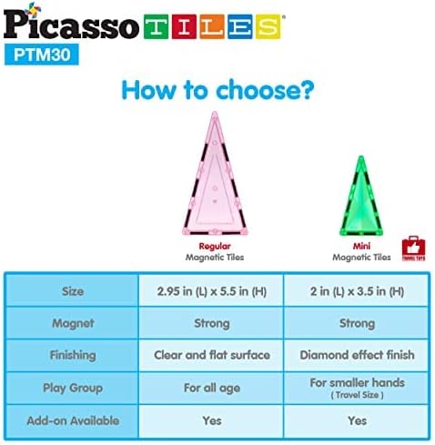 PicassoTiles 30 Piece Magnetic Building Blocks Mini Diamond Series Travel Size On-The-Go Magnet Construction Toy Set STEM Learning Kit Education Playset PTM30, PicassoTiles Mini Magnetic Tiles Expansion Car Truck and Figures Play Set, Kids Building Magnet Bricks STEM & Learning Toys, Magnetic Add-ons, Car Toys, Toddler Preschool 3 years and up boys and girls
