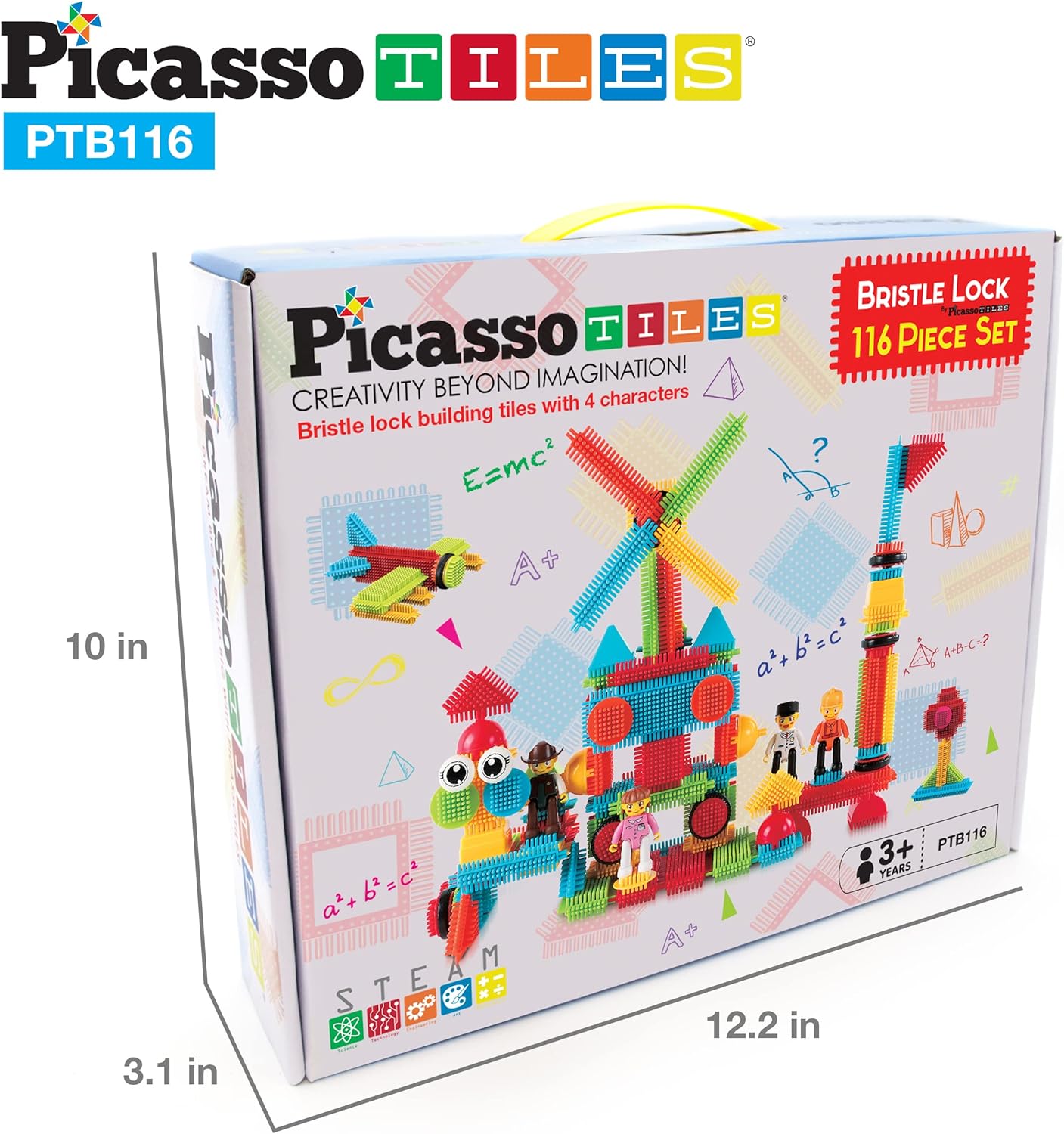 PicassoTiles 600pc Construction Toy Straw Building Set Children STEM Learning Interlocking Building Toys Creative Straw Connecting Builder Kits Early Education Kit for Kids Boys & Girls Ages 3+ PTS600(Brstle116pc)