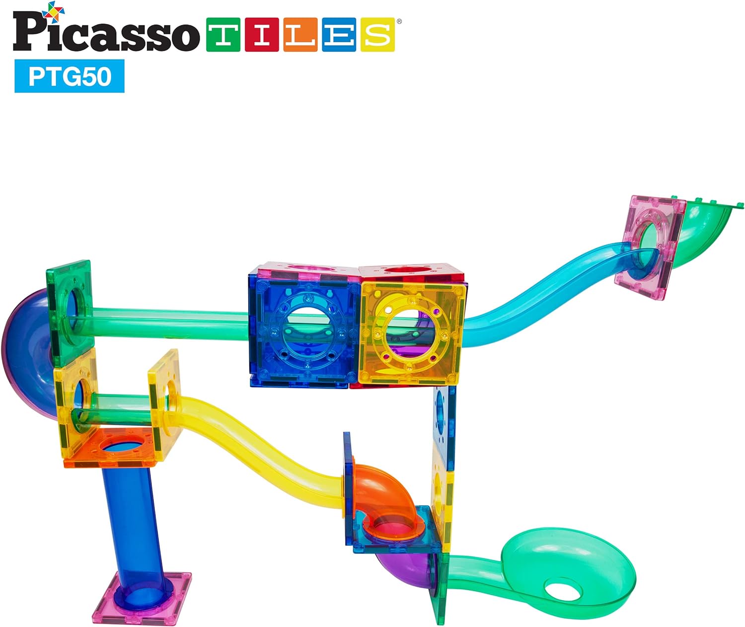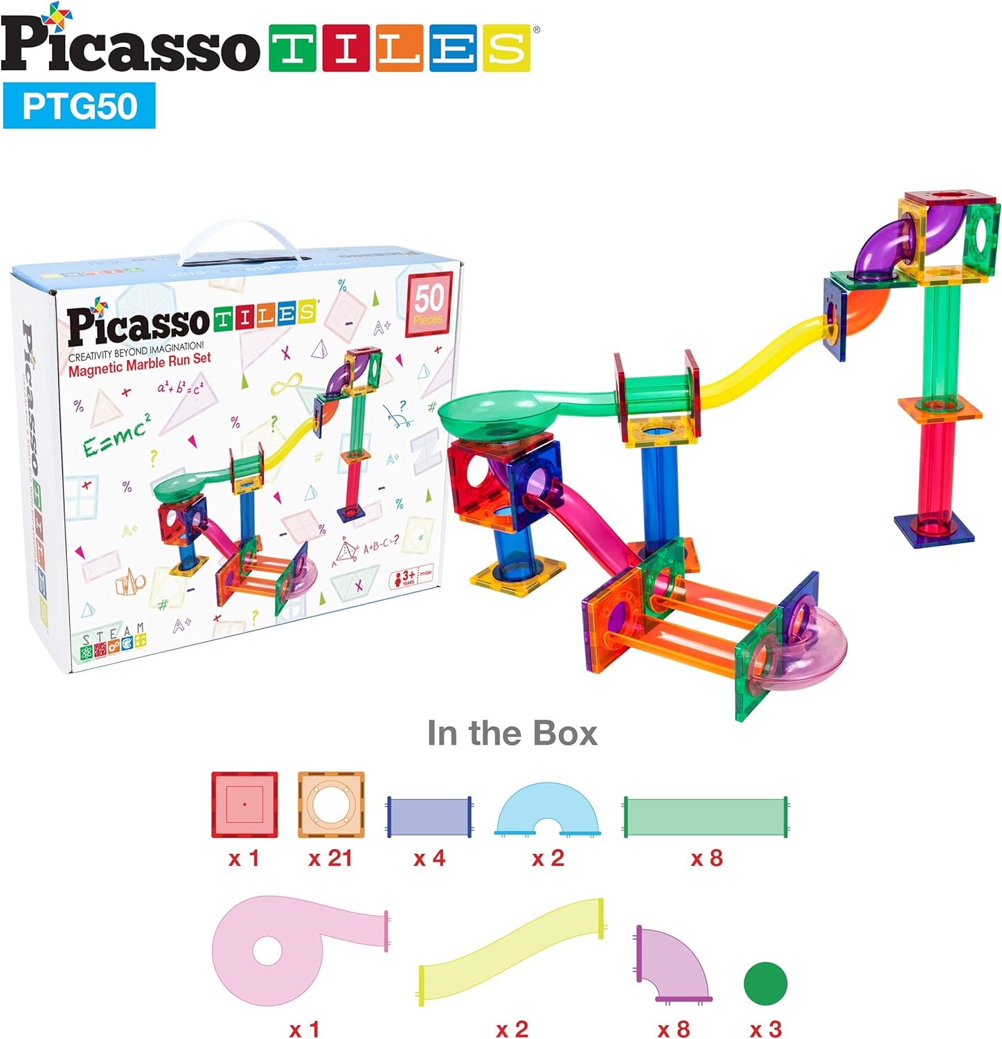Unleash the power of creativity and learning with the PicassoTiles 60 Piece Magnetic Building Tiles + 50 Piece Marble Run Race Track Fun & Creative Playset Bundle. This dynamic pairing is not just a toy but a gateway to STEAM learning, providing endless hours of educational and sensory fun for preschool and kindergarten kids ages 3 and up. Engage young minds in a world of magnetic marvels with the 60 Piece Magnet Tiles, allowing children to construct structures limited only by their imagination. The addition of the 50 Piece Marble Run Race Track takes playtime to new heights, introducing an exhilarating and educational twist that enhances fine motor skills and cognitive development.