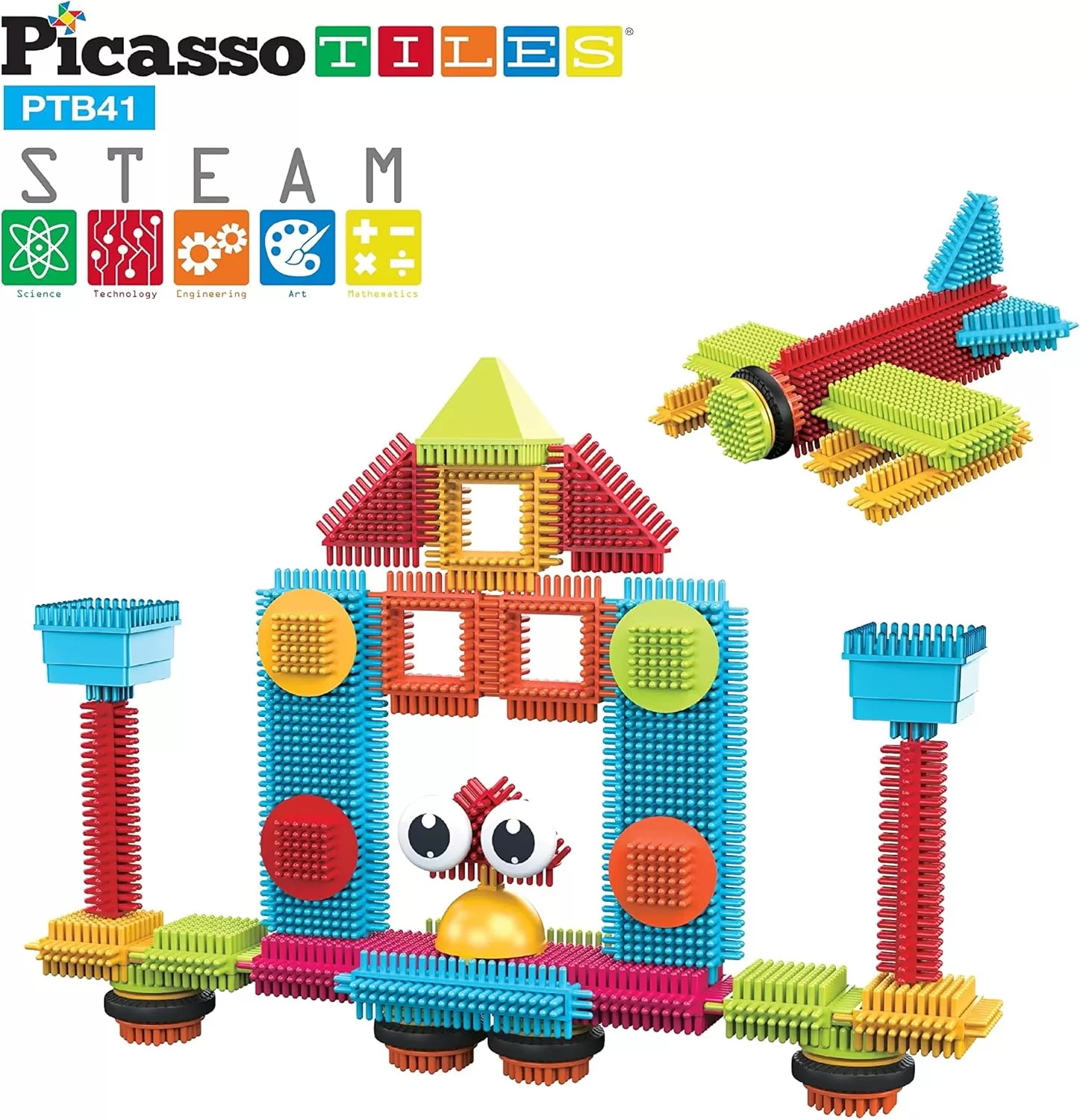 LEARNING IS FUN – Encourage creativity for STEM STEAM (science, technology, engineering, art, and mathematics) education which is the key factor to success in today's ever-changing environment. PicassoToys is a perfect educational present for school age children that will never go out of style. Bristle shape building blocks foster hand-eye coordination and problem-solving skills for toddlers, boys, and girls of all ages including preschool, group activity, classroom teamwork, and kindergarten.