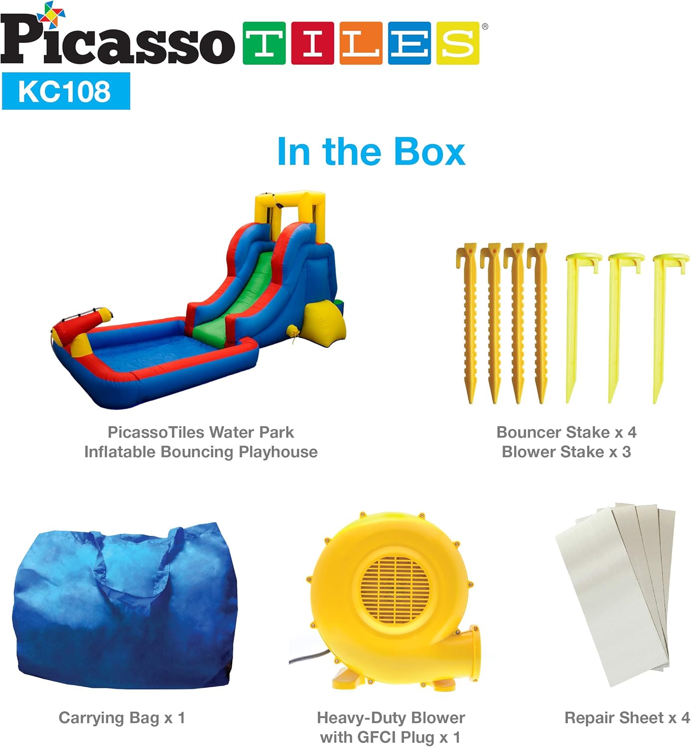 HIGH-QUALITY & NON-TOXIC & ETL CERTIFIED: KC108 is manufactured by a high-quality toxic-free material with the highest standards to ensure the safety of the children. The heavy-duty climbing area is constructed from the highest quality materials to ensure it’s strong and sturdy. KC108 comes with ETL Certified Heavy duty 385-watt grade blower which is ETL Certified. These safety features bring you and your family, fun, and excitement for years to come