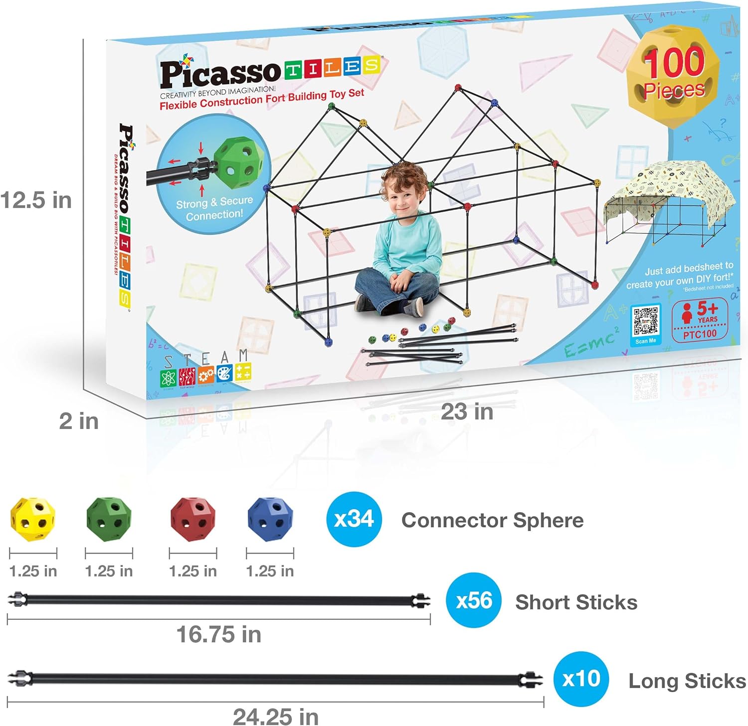 SPARKS IMAGINATION – The 100-piece fort building kit gives children endless possibilities for creating unique forts. Combine with multiple PicassoTiles sets to create enormous structures.