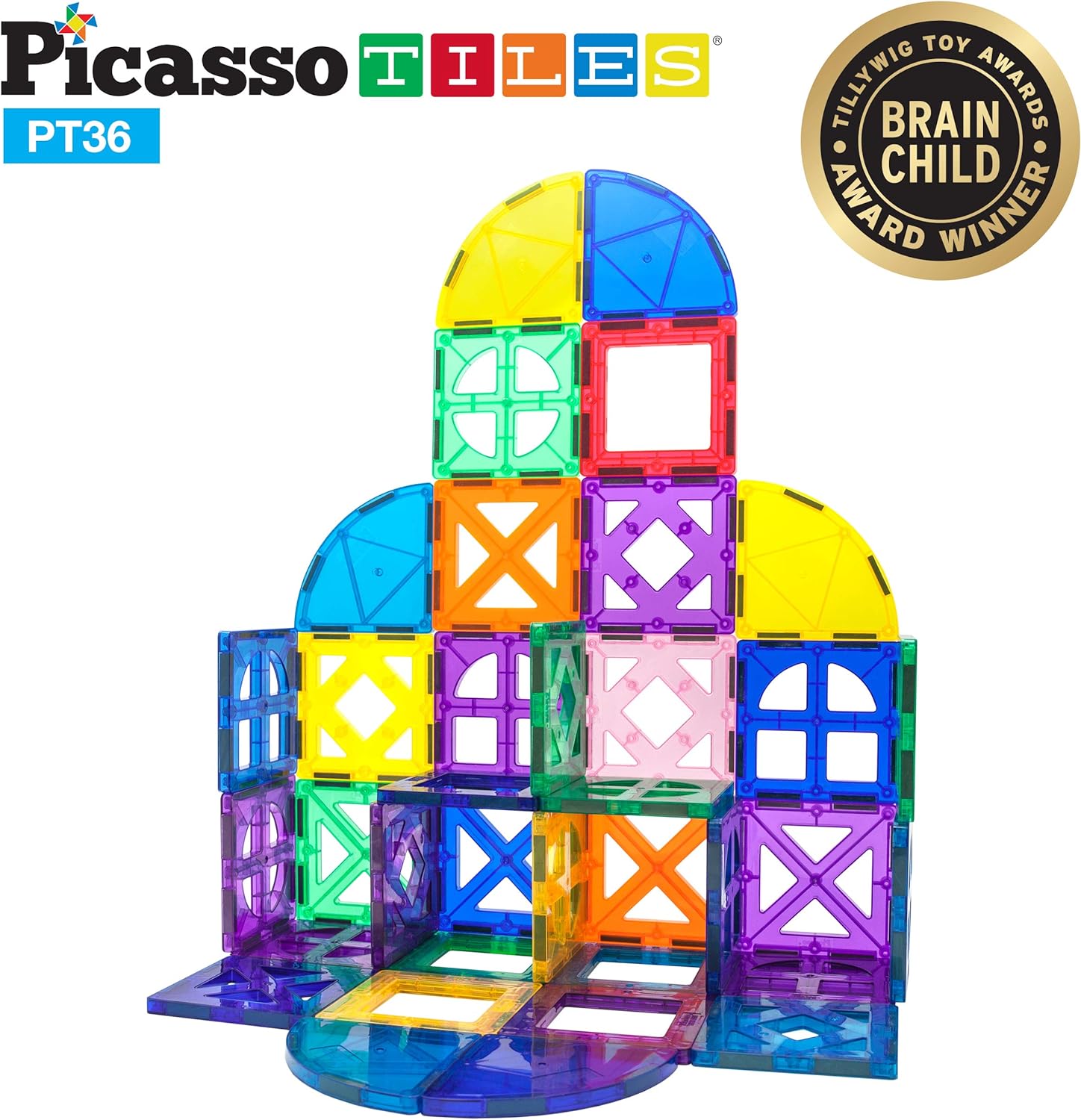 PicassoTiles 36 Piece Magnetic Building Block Quarter Round and Window Set Magnet Construction Toy Educational Kit Engineering STEM Learning Playset Child Brain Development Stacking Blocks Playboards, PicassoTiles 100 Piece Set 100pcs Magnet Building Tiles Clear Magnetic 3D Building Blocks Construction Playboards, Creativity Beyond Imagination, Inspirational, Recreational, Educational Conventional, PicassoTiles Magnetic 4 Family Action Figures Toddler Toy Magnet Expansion Pack Educational Add-on STEM Learning Kit Toys Pretend Playset for Construction Building Block Tiles Child Brain Development