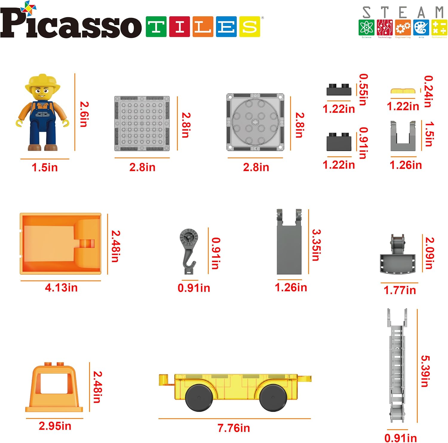 DREAM BIG & BUILD BIG: This 16-piece 2-in-1 playset is compatible with other PicassoTiles interlocking building bricks and magnet tiles. It features an action figure, car base, backhoe, and excavator. The magnetic character action figure has omnidirectional arms and legs, allowing you to rotate them around its body for more versatility and creative play. Easily switch this toy between an excavator or bulldozer, mix and combine it with different building blocks, and watch your creativity soar!